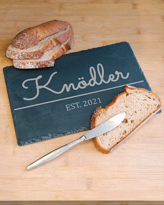 Schiefer-Servierplatte "Schorsch" mit personalisiertem Namen / Text und Gründungsjahr bzw. Hochzeitsjahr, Hochzeit, Geburtstag, Jahrestag