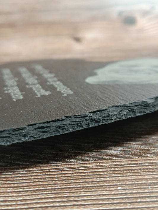 Schieferplatte mit Portrait und Trauerspruch / Wunschtext, als Grabschmuck, in verschiedenen Formen und Größen, für Beerdigung oder Andacht